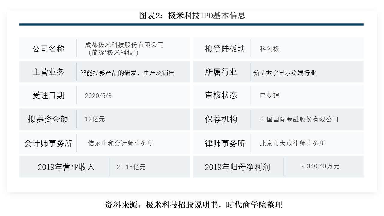 5月8日,上交所官网披露,成都极米科技股份有限公司(以下简称“极米科技”)科创板上市的申请已获受理。