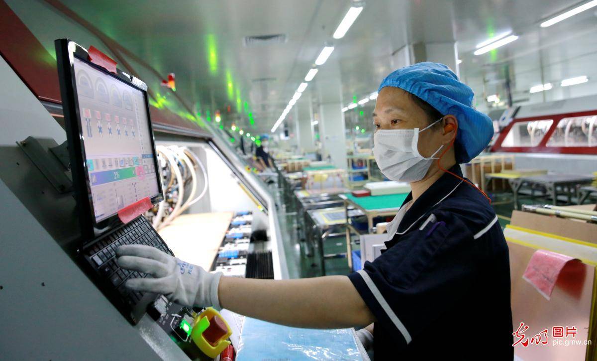 2020年5月20日,江西(吉水)精密电路公司5G线路板专业生产车间,技术工人正在高度自动化生产线监控5G专业线路板生产。该企业根据客户需求设计生产的专业5G能源板, 功分板,功放板,主要应用于5G天线、基站、通信网络等设备。(廖敏摄/光明图片)游戏网