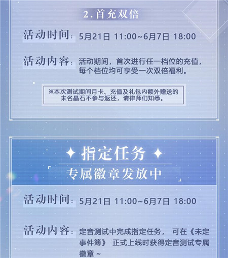 未定事件簿5月21日开测公告,开测的时间就是在今日啦,所以有哪些是需要我们知道的呢,下面就和小编一起来看看本次的公告吧,还能够领取到丰厚奖励哦。