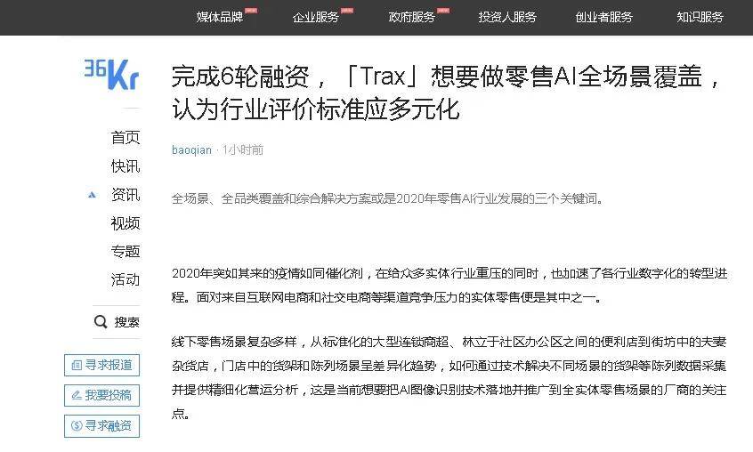 疫情稳定,市场回暖。近日,Trax大中华区总裁汤劲武先生接受了知名科技商业媒体36氪的线上专访,共同探讨了当前实体零售AI行业面临的现实挑战与未来的竞争趋势,并针对Trax新发布的《全场景零售AI白皮书》进行了深度交流。精彩全文转载如下:
