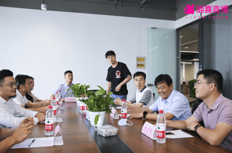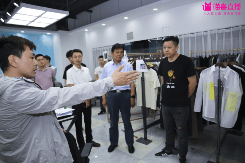 考察团走进喵喜公司,重点考察企业“直播电商”新零售模式,喵喜直播CEO冯涛、COO胡越鑫等全程陪同、热情接待。