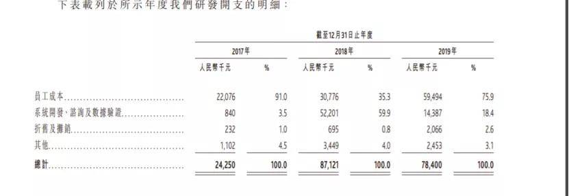 然而,从招股书来看,2019年该公司技术研发员工开支又飙升至近80%,说明公司去年在数据营销、SaaS运营管理系统及金融科技等技术研发方面的投入大幅减少,期间也没有新的技术研发项目投入。