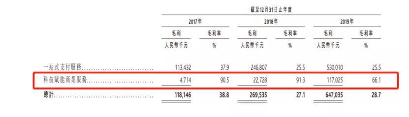 不过,2019年,公司科技赋能商业服务业务的毛利率高达66.1%。可见,科技赋能商业服务目前的收入贡献尚小,但盈利能力远高于一站式支付业务,且2016年至今均保持了较高的水平,一定程度上来说,这将成为公司未来业绩增长的一大看点。
