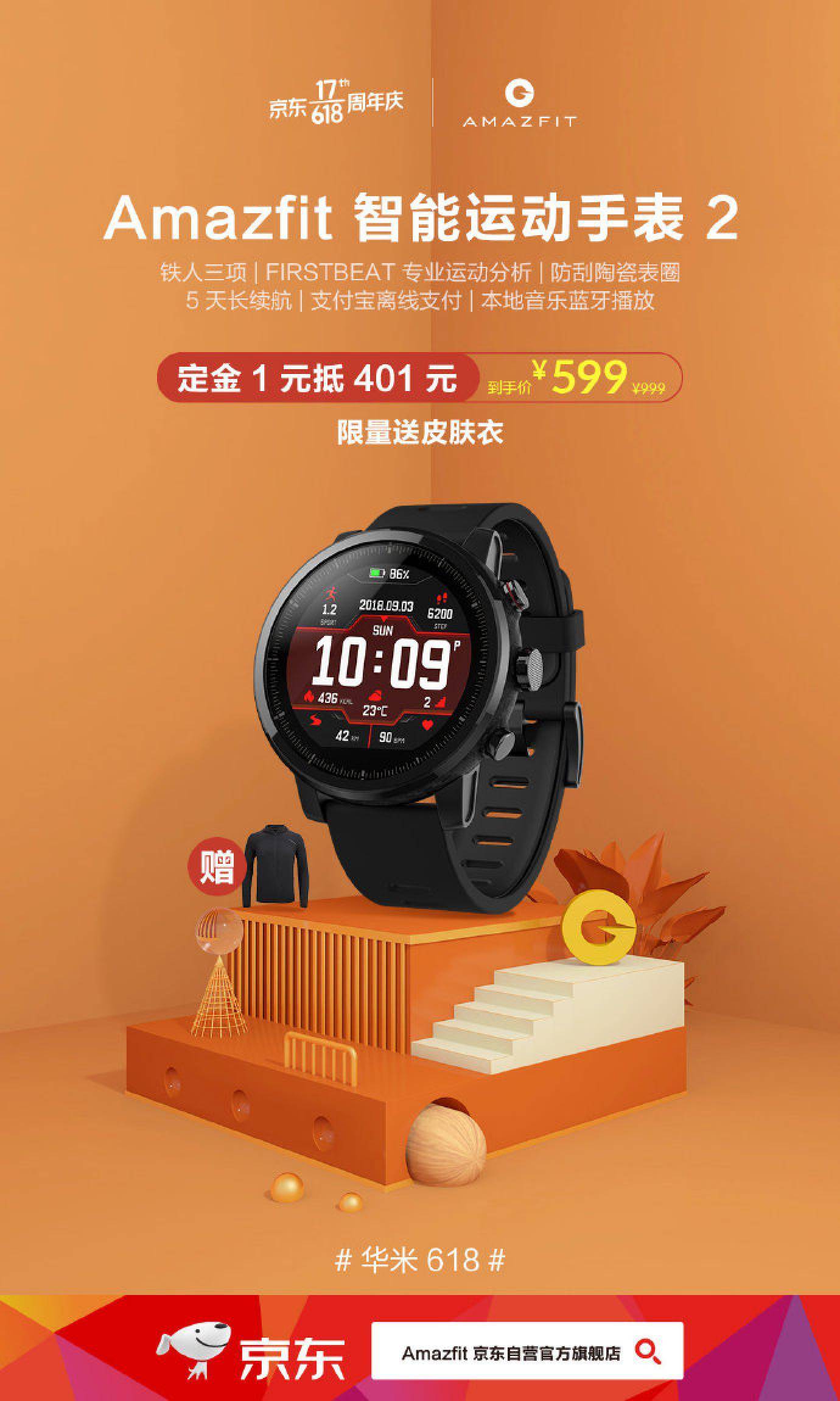 这样一款主打硬核运动的智能手表,原价999元,在本次618预售活动中可享定金1元抵401元的优惠,来到近一年来的历史低价,到手仅需599元!此外,还有限量皮肤衣相赠,先到先得,送完即止。作为华米旗舰级产品,Amazfit智能运动手表2既有强悍的运动功能加持,还有如此劲爆的价格优惠和赠品,在今天的同类产品中仍然拥有相当强劲的竞争力。如果你想要一款主打运动的智能手表,即刻预订Amazfit智能运动手表2就是最正确的选择,它可靠的表现不会让你失望。