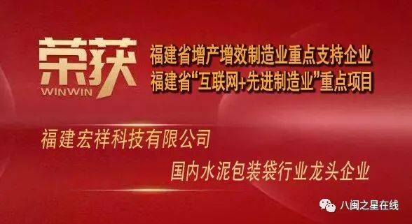 导语:为进一步支持推动优势特色产业和优势企业满产超产,引领产业上下游联动发展,培育发展新动能,实现疫情防控和经济社会发展双胜利。近日,福建省工信厅发布了《福建省一二三产业“百千”增产增效行动制造业重点企业》名单,全国水泥包装袋生产定点企业——福建宏祥科技有限公司荣登榜单, 凭借行业突出贡献,公司还荣获福建省第一批“互联网+先进制造业”重点项目荣誉称号。 这是政府有关部门对宏祥科技所取得成绩的充分肯定,为公司未来发展奠定了坚实基础。
