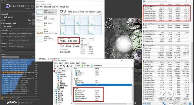 此外,惠普战66 三代 AMD版能够让处理器稳定的15W TDP下运行,核心频率稳定在2.7GHz附近,而从CINEBENCH R15全核渲染来看,这款机器能够让处理器稳定在3GHz频率下运行,整体表现相当不错了。