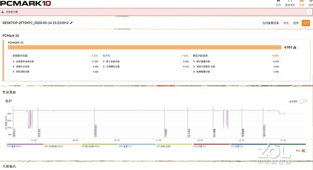 最终测试结果如上图所示:视频会议、网页浏览、应用程序启动等各项常用基本功能得分9220分;文档、表格等应用的生产力评分为7625分;图片编辑、渲染、视频等数位内容创作应用得分为4685分,总评分4951分。就结果而言,属于目前轻薄本、商用向笔记本电脑的主流偏上水准。满足各类文档、表格办公需求无压力,能够应付基本的视频剪辑、渲染和视觉化应用。