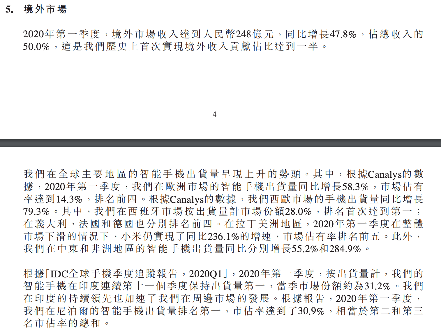 据Canalys的统计,一季度小米手机出货量的市占率上升至11.1%,稳居全球前四。在发售后2个月内,小米10系列出货量突破100万台;受5G高端机型的拉动,一季度小米手机平均售价持续提升7.2%,其中,中国大陆市场智能手机平均售价同比上升18.7%,境外市场同比上升13.7%。