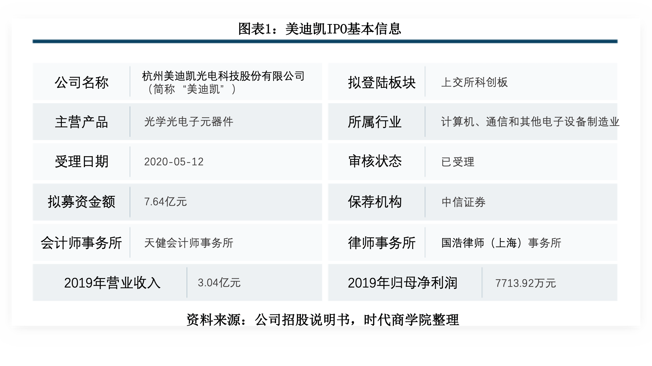 5月12日,杭州美迪凯光电科技股份有限公司(下称“美迪凯”)IPO招股书获证监会受理。该公司计划登陆科创板,预计募资7.64亿元,用于生产基地建设、研发中心建设等项目。