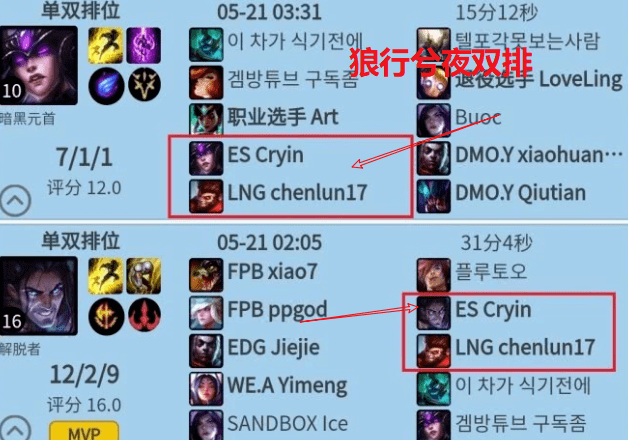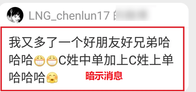 然后我们再来看看这段时间的转会消息,RNG原上单狼行现如今和DMO的中单选手兮夜一起双排,并且他们是大概率会转会去LGD战队。而缺少上单的RNG选择回购Cryin去和LNG交换圣枪哥,这个消息从LNG的替补上单chenlun17发的一条暗示WB也是能够看的出来。