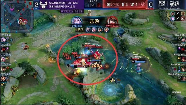 GK这招用力过猛,自己战线拉的太长,姗姗来迟的露娜正好从侧面切入,DYG打出2换4,顺势一波结束比赛。