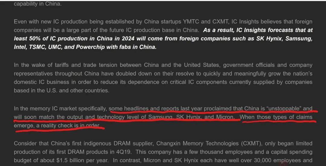 虽然摩尔定律在放缓,中国也以“全力冲刺”的姿态在追赶,但IC Insights认为,由于基础太差,再加上美国对半导体设备的限制,未来五年内中国不可能在集成电路上突然爆发自给自足,实际上,可能十年内都无法实现自给自足的目标。