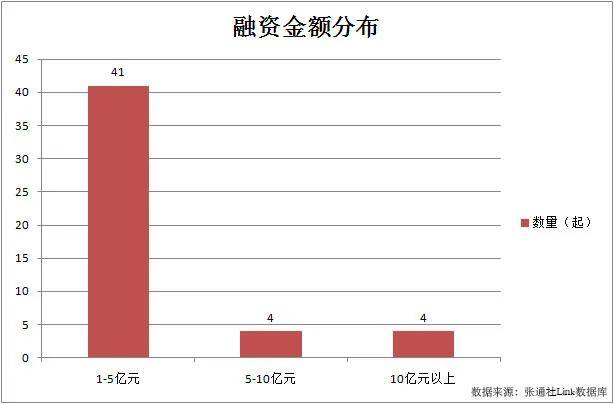 从融资金额分布看, 2019年亿元人民币级别的融资事件共49起,占比近全年的1/4,相比2018年70起呈小幅下降趋势。其中,以人民币为单位计算的亿元且低于5亿元级别的融资事件有41起,融资规模达71.49亿元;5亿到10亿元人民币级别的融资事件4起,融资规模约27.7亿元;10亿元人民币以上级别的融资事件4起,融资规模约43.49亿元。