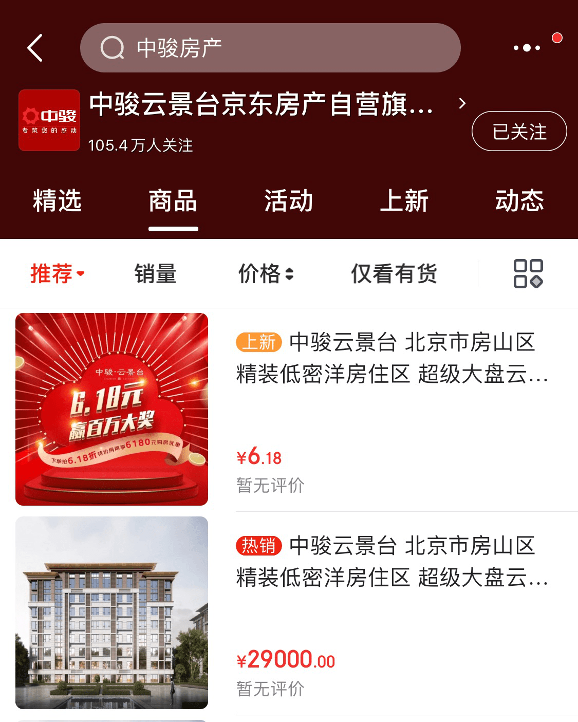 签约仪式当天,京东房产举行了直播活动,京东零售集团CEO徐雷及中骏集团执行总裁王勐亮相直播间,在线出售北京地区热门新盘的“中骏·云景台”1000套专享房源。