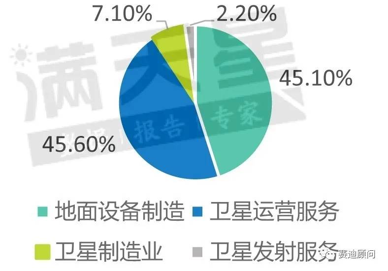 全球卫星产业收入细分结构占比 数据来源:美国卫星产业协会,赛迪顾问,2020年5月