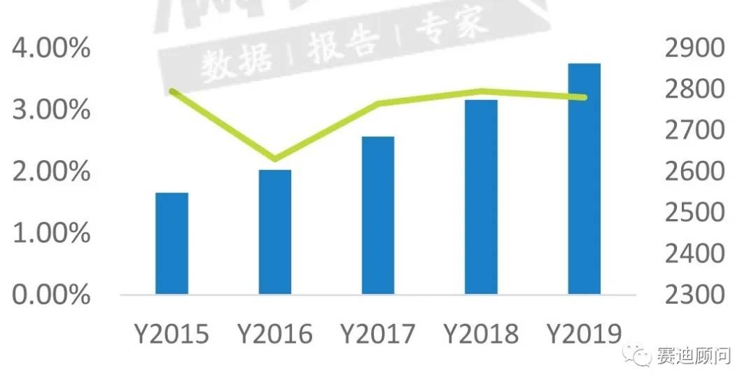 全球卫星产业收入及增速(亿美元) 数据来源:美国卫星产业协会,赛迪顾问,2020年5月