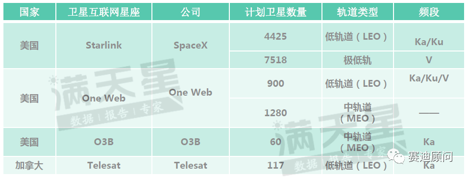 建设主体:Space X,OneWeb、Facebook等互联网领域科技巨头