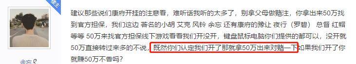 没想到被质疑的队伍代表非但不慌,反而气焰嚣张,坚持自己没有开挂。为了让自己的游戏行为足够服众,更是提出质疑方派代表出50w进行对赌。如果证实没有开挂,则支付自己50w权当"精神损失费";反之,则自己出50w平息玩家怒火。此举一出,一时间确实镇住不少玩家。