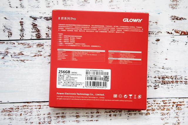 光威弈系列PRO固态硬盘的尺寸是100mmx70mmx7mm,重量为60g,硬盘背面下方贴着P/N和S/N编号,以及容量等参数信息。