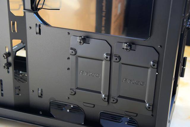内部设计和做工看起来很不错。支持垂直显卡。2个2.5英寸硬盘安装位,独立的硬盘安装托架,拆装方便。