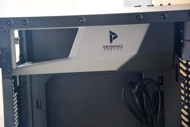 但是前面板是不能拆卸的,也没有安装风扇的风扇位。侧板玻璃按压式开关,开启侧面版就无需工具了,上置电源仓,电池仓旁边是两个3.5/2.5英寸硬盘安装位。