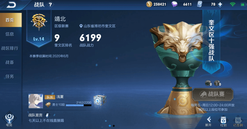 经过时间推移,战队界面发生了很大的变化,而且还增加很多了新的内容,比如游戏里增加了排名,而且还能发各种红包,乐趣比以前也多了。接下来就让我们看看,不同段位加战队的目的都是什么。