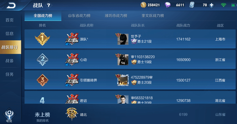 然后钻石为了排名,现在战队已经有排名,大到全国,小到城镇。因此很多钻石玩家为了爱面子,所以专挑一些有排名的战队。并且这个排名在游戏里也会显示,在你进游戏的加载界面,就会显示你所在战队排在多少名。