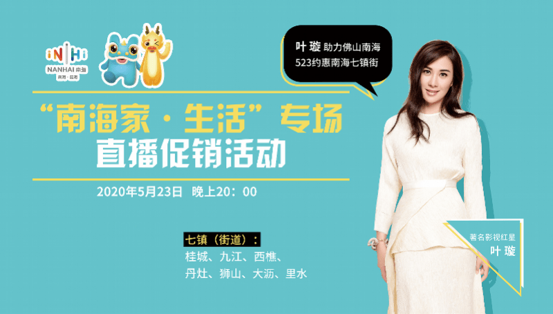5月23日晚上8时,南海七镇(街)主官将上线影视明星叶璇的淘宝直播间,带来最优质的南海产品,堪称南海最强带货天团。