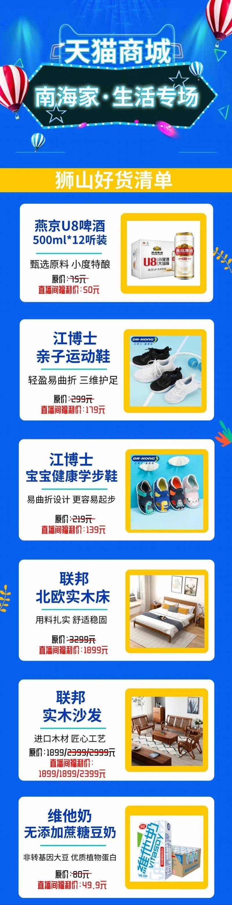 原标题:南海7镇街主官上线天猫!带货清单曝光,鞋服家具家电全部劲爆价