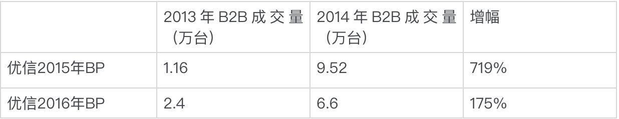 根据36氪拿到优信在2015年C轮后和2016年的两轮融资BP,它自己写就的这两份BP,其核心业务B2B交易的数据有出入: