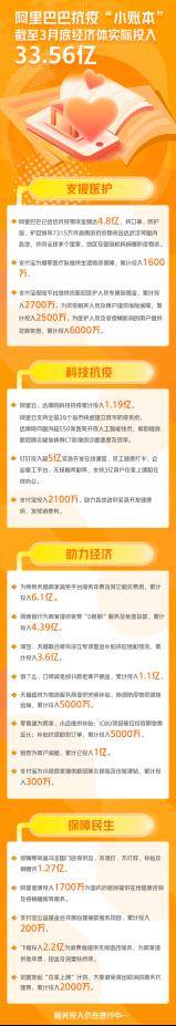 5月23日,阿里巴巴公布了抗疫投入明细,截至3月31日,阿里巴巴经济体实际投入抗疫已达33.56亿。其中,阿里集团累计投入27.63亿,蚂蚁集团累计投入5.93亿,相关投入仍在进行中。阿里巴巴也是首个公布抗疫投入明细的互联网企业。