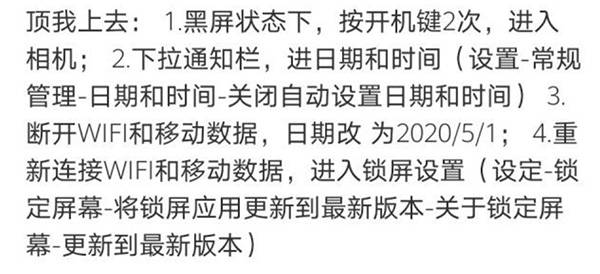 网友目前给出的解决方案是:1,想办法联网更新锁屏(更新流程为设置-锁屏屏幕-关于锁屏-更新);2,时间调整为闰四月以外;3,把锁屏方式改为无锁屏。三个方案可以选一个即可避免系统问题。