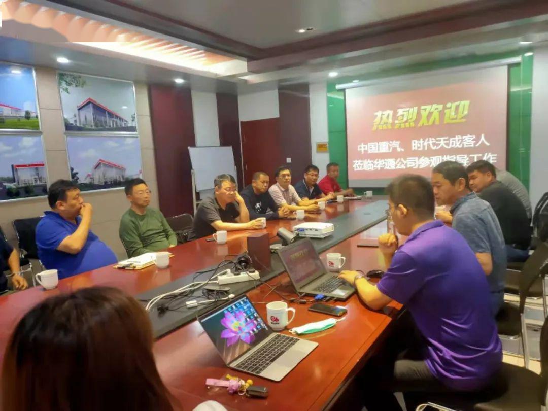 在何兆广总裁的陪同下,中国重汽集团、山东时代天成公司一行领导来到业务大厅参观。通过参观领导们了解到蜗牛货车公司的经营情况、公司现有的业务模块和发展前景,并对市场的建设规模、发展规划、市场管理 等方面取得的成绩均给予了高度评价。 参观结束后双方开启了座谈会。