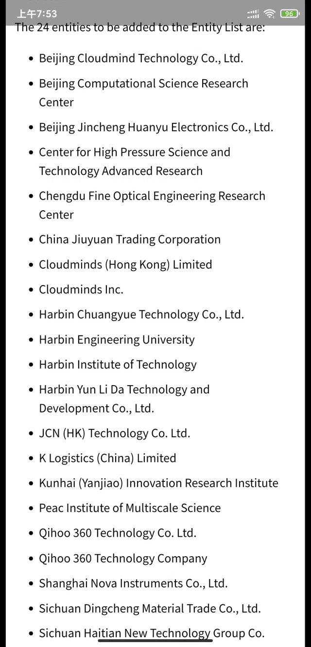 继华为之后,又有33家中国企业和机构被美国列入“实体清单”。