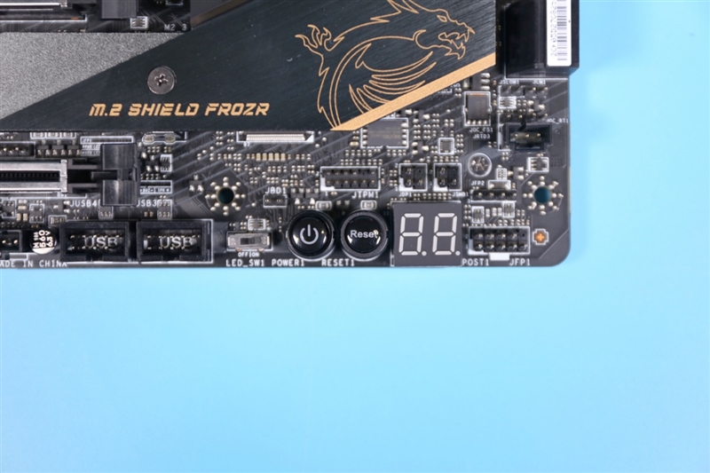 另外还有2个M.2 2280以及一个M.2 22110接口,每个接口都覆盖有MSI冰霜铠甲。