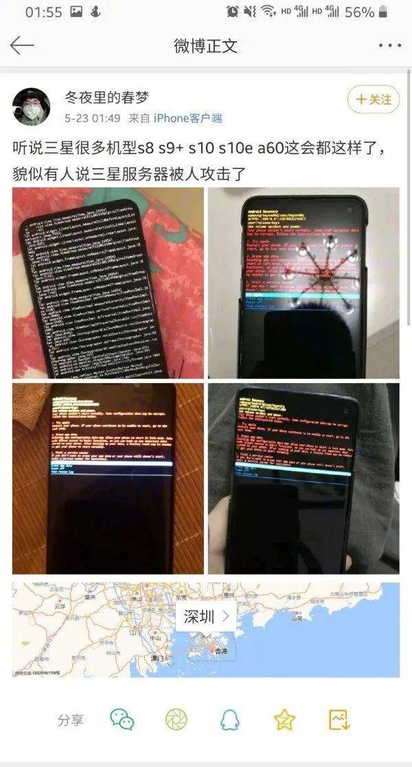 5月23日,南都记者获悉网络上有不少三星手机用户投诉,在凌晨开始发现手机系统崩溃,出现黑屏、乱码、无限重启等情况。