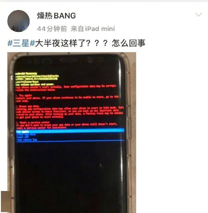原标题:三星手机突发系统崩溃,现黑屏、乱码!回应了