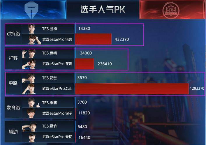 赛后的人气可以看出E星战队远超于TES,被吐槽“玩啥啥不行,人气第一名”,当然这都是选手通过多个赛季打出来的成绩,不能一下就否定,希望E星后续继续加油吧!