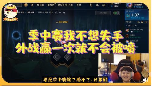 Zoom:要是季中赛输了我就播不了,输了我被喷的话就永失我zoom,直播间看不到我了,我不播了。万一失手了要被喷难受呀,要是都失手的话那也太难了,我也不想失手,要是外战能赢一次就不会被喷了。