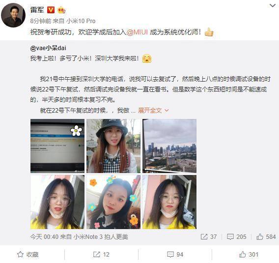 原标题:雷军迷妹考研成功:立志成为MIUI工程师