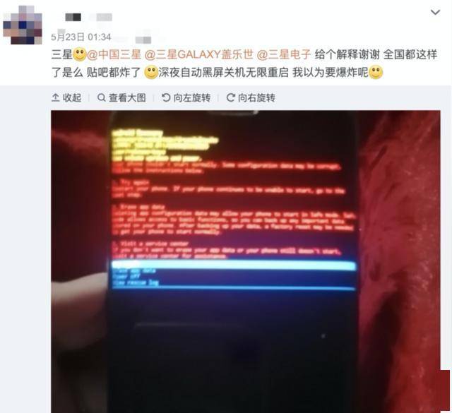 原标题:黑屏、乱码、反复重启 三星手机翻车事迹再+1