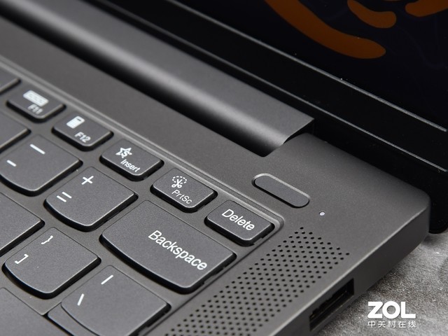 外观方面,相比上代小新Air 14,2020款主要在细节上做了一些优化,比如去掉了独立的指纹识别模块,将电源按键与指纹识别功能二合一,这样可以让C面看起来更协调、更美观。笔者尝试了一下,指纹识别的速度相当快,狭长的开机键并不会影响到指纹识别的速度与正确性。