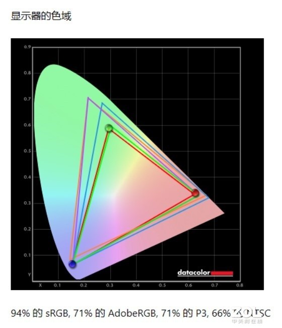 经检测,我们收到的这款小新Air 14 2020锐龙版的屏幕来自群创,型号是N140HCG-EQ1。经Spyder5 Elite测试,屏幕覆盖了94%的sRGB、66%的NTSC色域,最高亮度为285.1cd/㎡,△E为1.64(PS:94% sRGB属于测试误差范围内)。