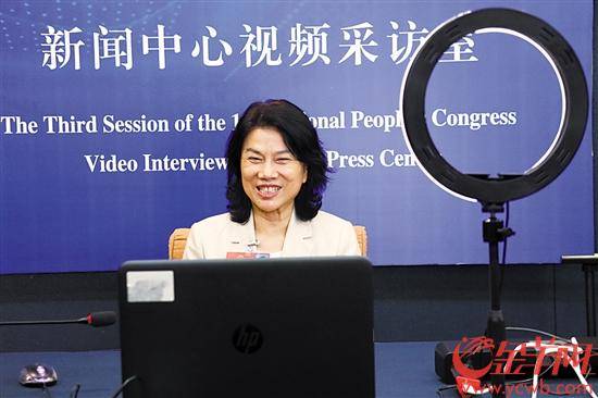 董明珠在视频采访室接受采访 羊城晚报全媒体记者董柳摄