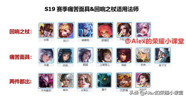 这里我总结了S19赛季,痛苦面具和回响之杖分别适合哪些法师使用,仅供大家参考: