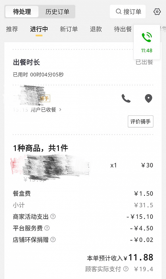 原因很简单。张安的小店入驻的是美团外卖,平台每单佣金抽成比例为23%,另有4.5元保底服务费。扣除人工、门店租金、佣金抽成等费用外,一单赚2-3块钱,有时候会赔本。