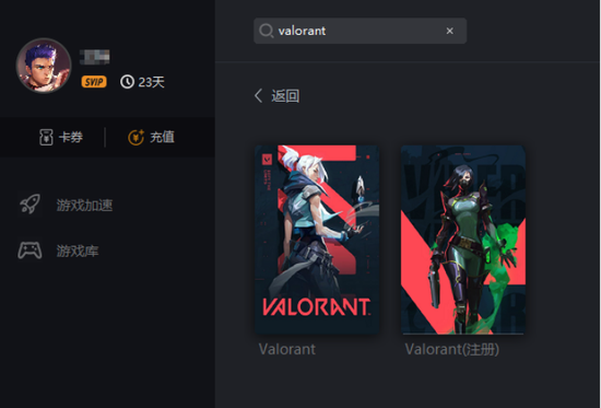7、游戏到手之后,在奇游加速器游戏库中查找valorant,点击一键加速就可以玩了。