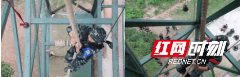 另一边,攀登科目中,红蓝双方也要在速度上一争高下,你追我赶,只为第一个拍响顶端的铃铛。18米长的大绳,顶端架在6层楼高的天台上。背着短管的“95”和长管的“03”,带上全套装具,特战队员们和应急班战士如灵猴般在大绳上飞舞。应急班战士杨少坤让在场所有人都傻了眼,保护绳拉起的速度才堪堪比得上他上爬的速度。“这么快?有这样的好同志是支队之幸呀!”在场观赛的支队长宁志勇都惊讶得合不拢嘴。