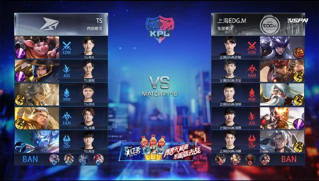 到了第二局和第三局更加过分,第二局比赛当中TS使用了干扰刘禅加姜子牙的速推体系,八分钟破对手高地,最后顺利赢得比赛。第三局比赛EDG.M估计是发现自己打得太认真了,于是直接加入,这就出现了钟馗匡扶汉室大战吉吉国王,最后凭借二师兄猪八戒一波一打四成功战胜EDG.M,也让刘备和刘禅两父子保持了百分百胜率。
