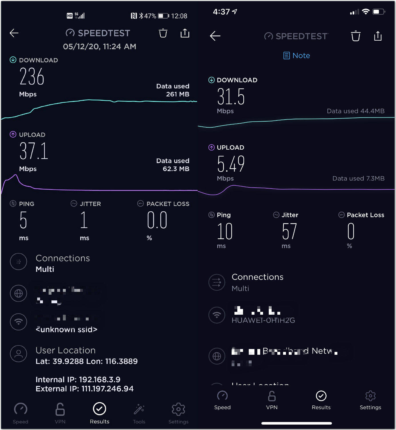 大家应该看出来了,在极端的测试点楼梯间测速,虽说出现了衰减,但是速度也不弱。为了有一个参考,左图手机是用荣耀30 Pro测试所得,右图手机是iPhone测试,在同一地点测试,荣耀手机差不多是iPhone的8倍,可见路由器和手机之间连接不仅仅取决于路由器,手机的联网能力也很重要,但为什么不同手机之间会差这么多呢?首先是WiFi6本身的升级,比WiFi5拥有更低的延迟,更快的速度,更稳定的信号,同时还可以让手机终端更为省电。